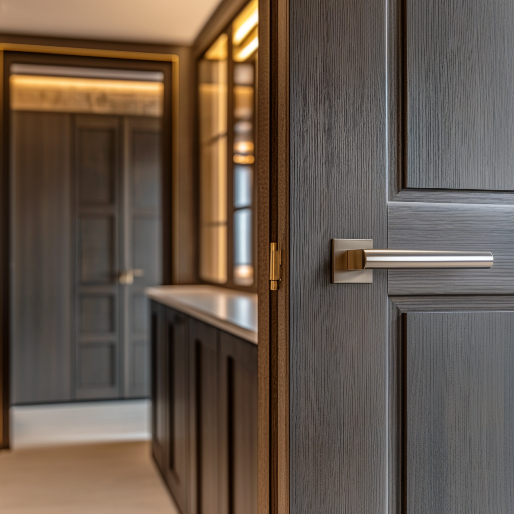 Montažo notranjih sobnih vrat izvedemo z natančno poravnavo podboja, tekočim delovanjem tečajev ter pravilno nastavitvijo ključavnice za tiho in zanesljivo vsakodnevno uporabo.
